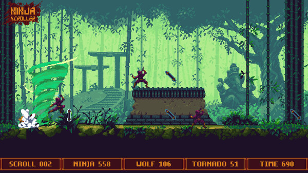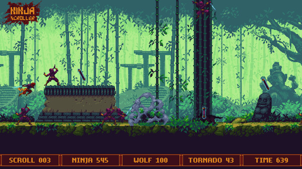 "Ninja Scroller" — это захватывающий платформер, который погружает вас в мир ниндзя, наполненный яркими локациями и динамичными боями. Каждый уровень предлагает уникальные испытания и захватывающие сражения против разнообразных врагов, от простых пехотинцев до хитроумных боссов. Атмосфера игры пропитана японской культурой, что придаёт ей особую харизму и очарование.