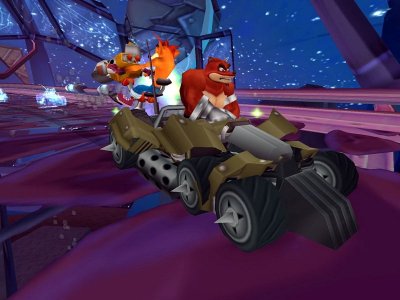 "Crash Tag Team Racing" — это увлекательная гоночная игра с элементами платформера и аркады, в которой вы соперничаете на трассах, используя оригинальные транспортные средства, созданные из персонажей вселенной Crash Bandicoot. Это настоящая вспышка ностальгии, которая заставляет сердце биться чаще благодаря ярким персонажам и динамичным гонкам, где смешение скорости и юмора создает уникальную атмосферу.