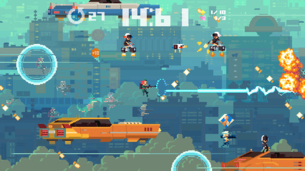 "Super Time Force Ultra" — это уникальная аркадная игра в жанре платформера с элементами временной манипуляции, которая сочетает в себе азартные битвы и стратегическое мышление. Этот проект привлекает внимание яркой пиксельной графикой и бодрым юмором, создавая неповторимую атмосферу.