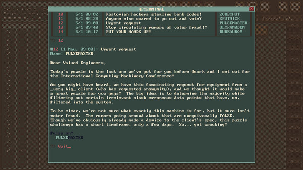 "QuantumPulse 2A" — это захватывающая приключенческая игра в жанре научной фантастики с элементами стратегии и ролевого взаимодействия. Она предлагает игроку уникальный опыт, где каждый выбор может изменить ход истории и судьбы персонажей.