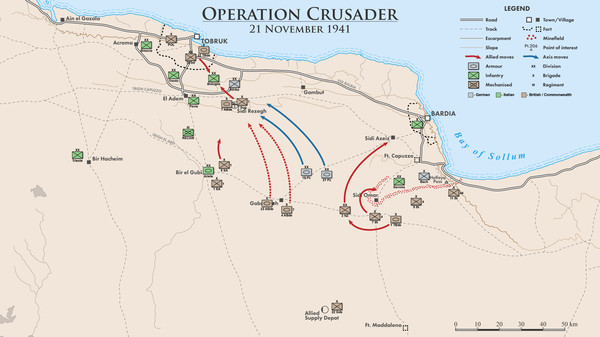 "Attack at Dawn: North Africa" – это стратегическая игра, фокусирующаяся на военных действиях во времена Второй мировой войны, где игроки управляют войсками в сложных и динамичных условиях сражений в северноафриканском театре боевых действий.