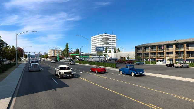 Графика великолепна: дороги живописны, а города проработаны до мелочей. Это не просто мир, а пространство, дышащее жизнью. Встречаешь другие грузовики, проезжаешь мимо заправок и ресторанов, а иногда просто останавливаешься, чтобы насладиться видом или сделать пару снимков.