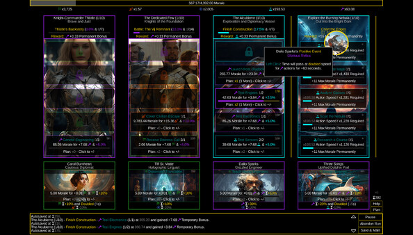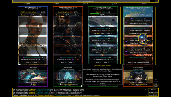 Нельзя не отметить, насколько продуман механика прогрессии: время, ресурсы и стратегии взаимодействуют друг с другом, создавая интересные варианты решения задач. С каждым уровнем игра становится всё более захватывающей, и ты чувствуешь себя настоящим управляющим вселенной, который принимает решения, способные изменить ход событий.