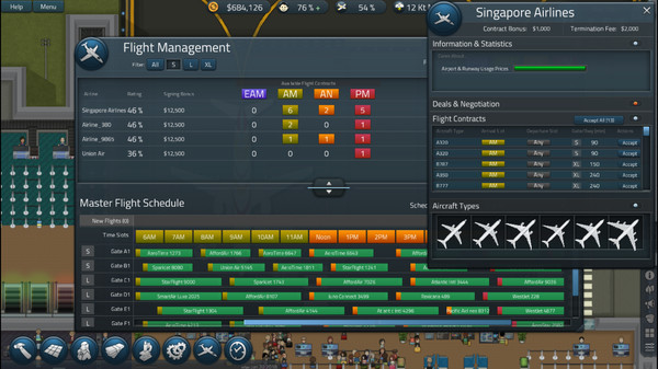 "SimAirport" — это симулятор управления аэропортом, где игроки берут на себя ответственность за проектирование, строительство и управление всеми аспектами аэропорта, от терминалов до взлётно-посадочных полос.
