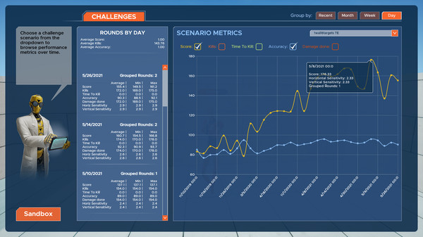 "KovaaK's" — это игра в жанре симулятора стрельбы, предназначенная для тренировки и улучшения навыков в стрельбе от первого лица. С первых мгновений у меня возникло желание освоить различные аспекты управления огнем, которые предлагают множество уникальных режимов и сценариев. Каждая карта здесь словно произведение искусства, проработанное до мелочей, где ты можешь отточить свою меткость и реакцию.