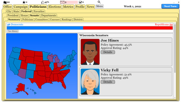 Это не просто игра — это возможность взглянуть на политический процесс с другой стороны и оценить, насколько тонкой может быть грань между успехом и провалом. Если вам интересно, как функционирует мир политики и как можно влиять на общественное мнение, то данный проект однозначно стоит попробовать.