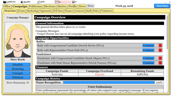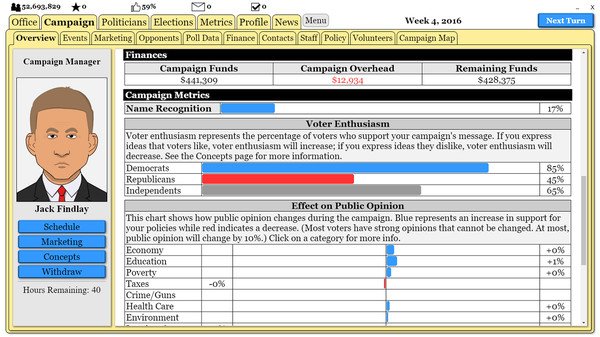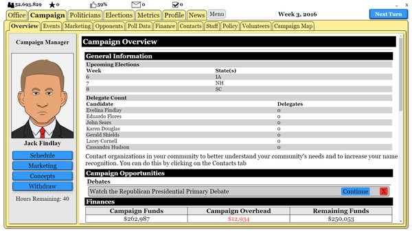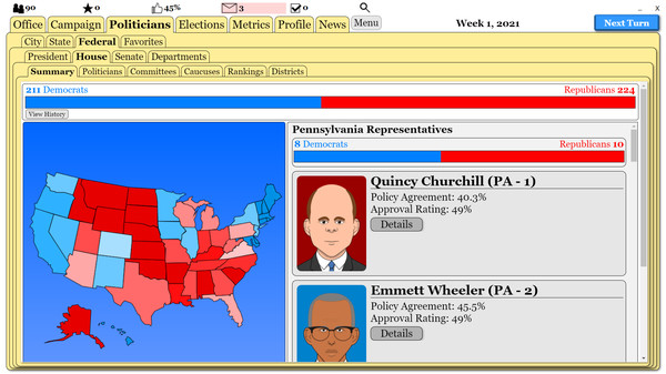 "The Political Process" — это симулятор политической карьеры, который позволяет игрокам создать своего кандидата и вести кампанию на выборах, принимая сложные решения и сталкиваясь с реалиями политической жизни. Ощущение, что ты не просто наблюдаешь, а активно участвуешь в процессе, захватывает с первых минут.