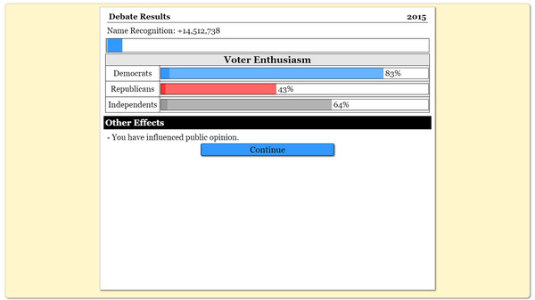 Каждое действие, будь то выбор слов на дебатах или решение о том, как реагировать на критику, ощущается весомым и значимым. Этот проект искусно иллюстрирует, как политика может быть не только борьбой за власть, но и сложной игрой психологических манипуляций и стратегий. Каждая встреча с избирателями или пресс-конференция превращается в настоящую проверку твоих навыков убеждения.