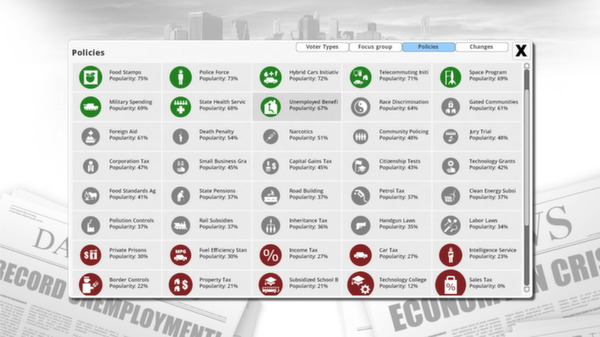 Графика и интерфейс просты и функциональны, что позволяет сосредоточиться на самом процессе управления. В игре присутствует множество факторов, которые нужно учитывать, и каждый элемент — экономические показатели, уровень преступности, здравоохранение — требует тщательной проработки. Это создает ощущение глубины и серьезности.