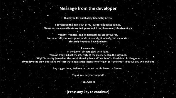 В целом, "Geometry Arena" — это замечательный пример того, как простая идея может перерасти в увлекательный игровой опыт, который будет радовать как новичков, так и опытных геймеров.