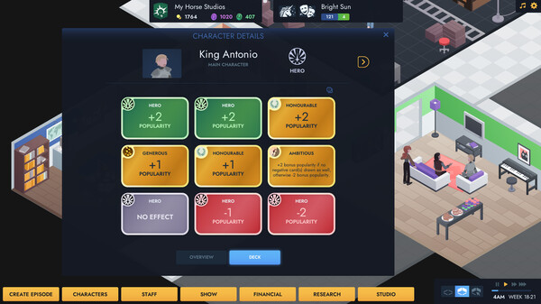 Персонажи, созданные в ходе игрового процесса, оживают благодаря продуманным диалогам и ярким характерам. Наблюдать, как динамика отношений между ними влияет на успех шоу, — это действительно захватывающе. Динамично развивающийся сюжет всегда заставляет ждать новых поворотов, а каждая новая серия становится настоящим сюрпризом.
