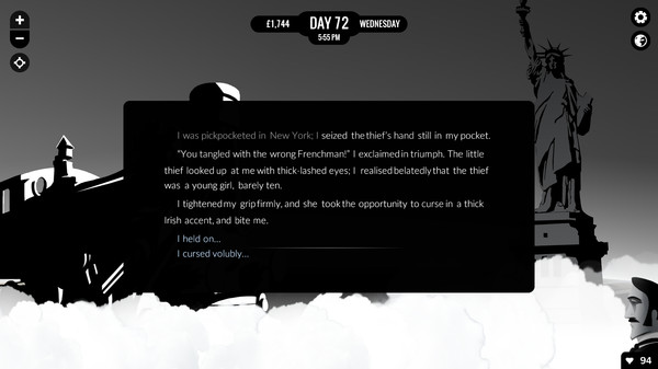 "80 Days" — это увлекательное приключенческое путешествие в жанре интерактивной новеллы, где игроку предстоит обойти земной шар за 80 дней, следуя за амбициозным Phileas Fogg. С первых шагов на этом захватывающем маршруте чувствуешь, как каждая локация наполняется живыми деталями и характером, позволяя не только наслаждаться красотой различных стран, но и взаимодействовать с их культурами.