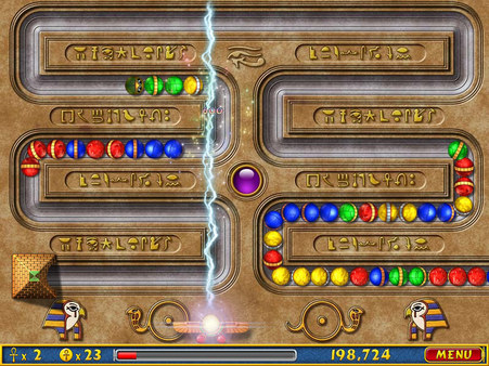 "Luxor" — это увлекательная аркадная игра в жанре «матч-3», где вы берёте на себя роль защитника Египта, сражаясь против цветных шариков, стремящихся добраться до пирамиды. Визуальный стиль и музыкальное сопровождение создают настоящую атмосферу загадочного Древнего Египта, что не может не вдохновлять. Каждый уровень предлагает уникальные испытания, заставляя активно думать и быстро принимать решения.