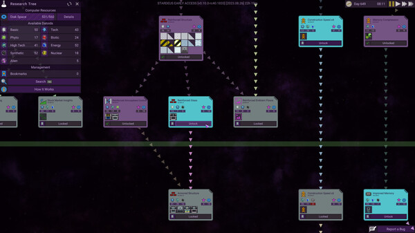 "Stardeus" — это увлекательная космическая стратегия с элементами управления колонией, которая бросает вызов вашим навыкам планирования и креативности в управлении ресурсами. Игра завлекает своим уникальным видением исследовательской жизни в безбрежном космосе, где каждый шаг может привести как к процветанию, так и к катастрофе.