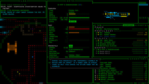 Игра создана для тех, кто ценит сложность и глубину в игровом процессе. В мире, полном рисков и возможностей, каждый шаг имеет значение, а каждая ошибка может обернуться фатальной. "Cogmind" — это не просто игра, это опыт, который оставляет после себя желание возвращаться туда снова и снова, пытаясь раскрыть все секреты этого удивительного механического мира.