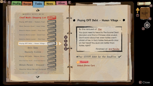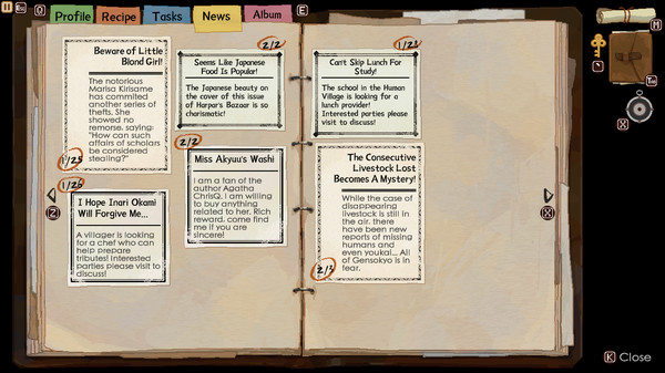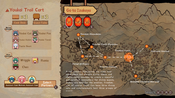 "Touhou Mystia's Izakaya" — это уникальная игра, сочетающая элементы симулятора управления рестораном и визуальной новеллы, основанная на знаменитой вселенной Touhou. Это произведение предлагает не только интересный геймплей, но и очаровательный сюжет, который постепенно раскрывает тайны и интриги местных персонажей.