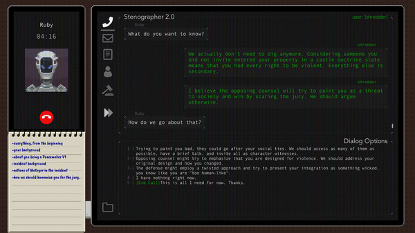 "Justice.exe" — это захватывающая приключенческая игра в жанре киберпанк, которая сочетает элементы детектива и ролевой игры, погружая игрока в мир высоких технологий и этических дилемм.