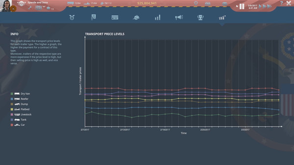 "TransRoad: USA" — это стратегическая игра в жанре управления перевозками, в которой игрокам предстоит развивать собственную транспортную компанию, организуя грузовые перевозки по всей стране.