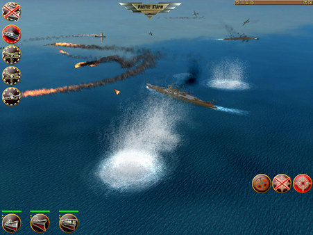 "Pacific Storm" — это стратегическая игра с элементами авиасимулятора и морского боя, действие которой разворачивается во время Второй мировой войны. В ней вы оказываетесь в эпицентре грандиозных сражений, где необходимо управлять флотом и авиацией, тщательно планируя свои действия для достижения победы.