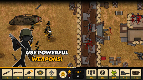 "Stickman Trenches" — это увлекательная стратегическая игра с элементами тактики, где игроки управляют отрядом человечков в битвах, происходящих на просторах военных окопов.
